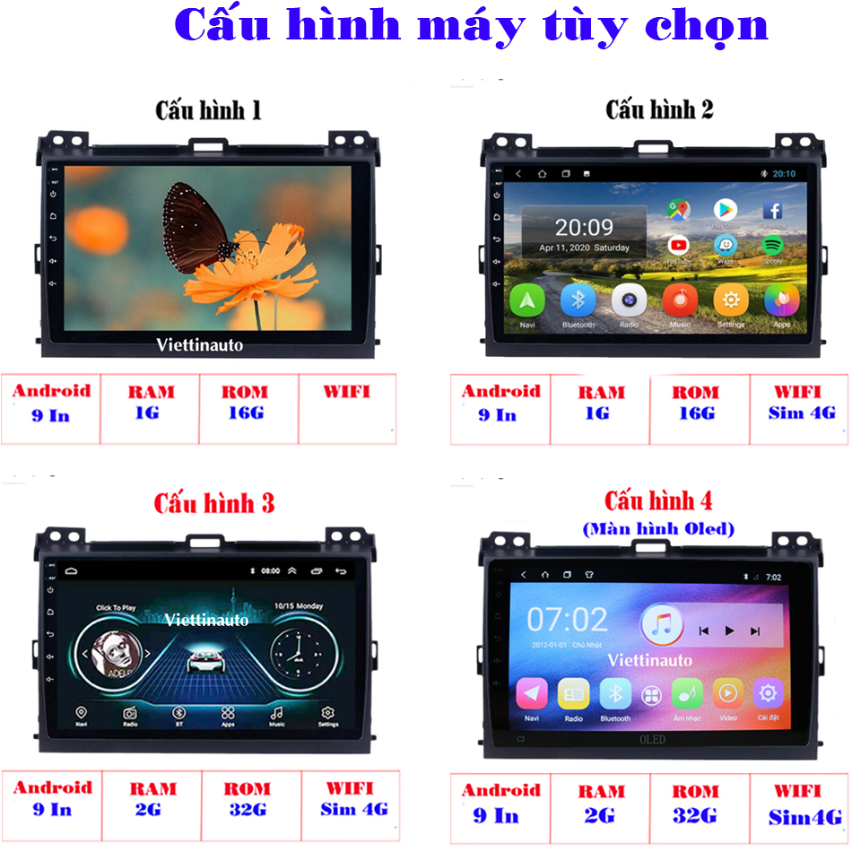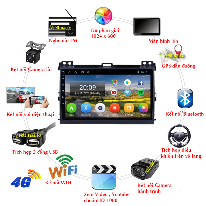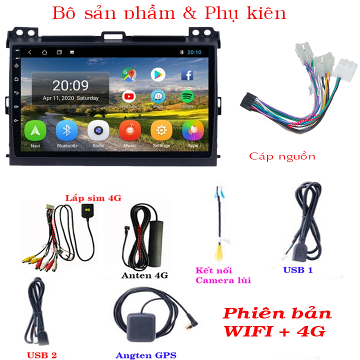 Tên sản phẩm: Màn hnh Toyota Prado 2004-2012 Android 9 In Tiếng Việt, GPS dẫn đường, điều khiển ra lệnh bằng giọng nói