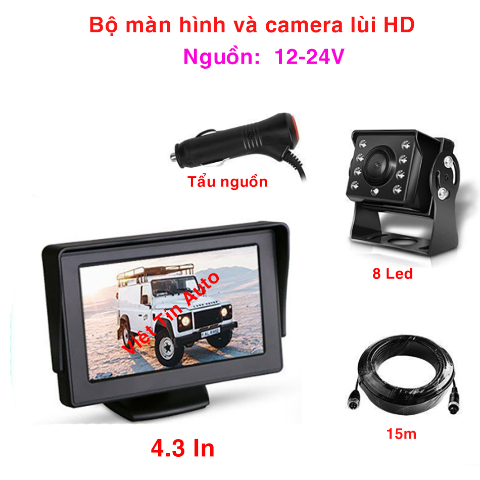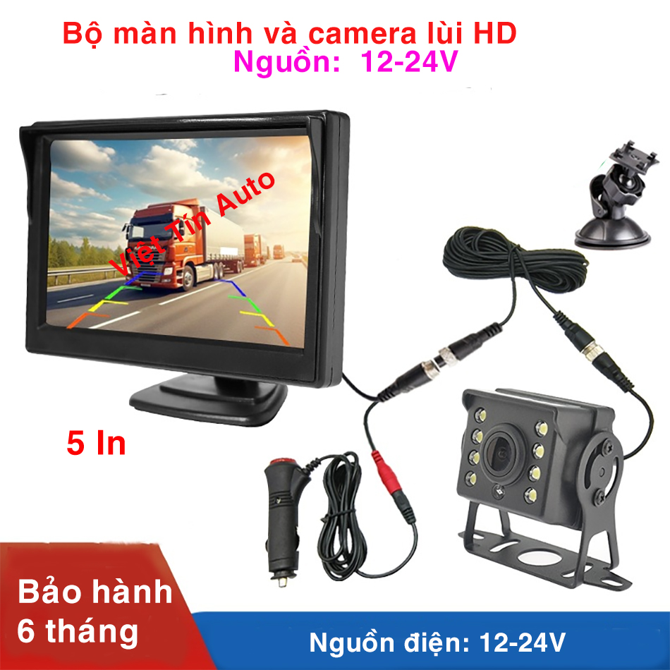 Bộ màn hình và cam lùi xe tải gắn taplo màn 4.3 In, 5 In điện 12-24V dễ dàng lắp đặt, chuẩn HD cho hình ảnh rõ và sắc nét.