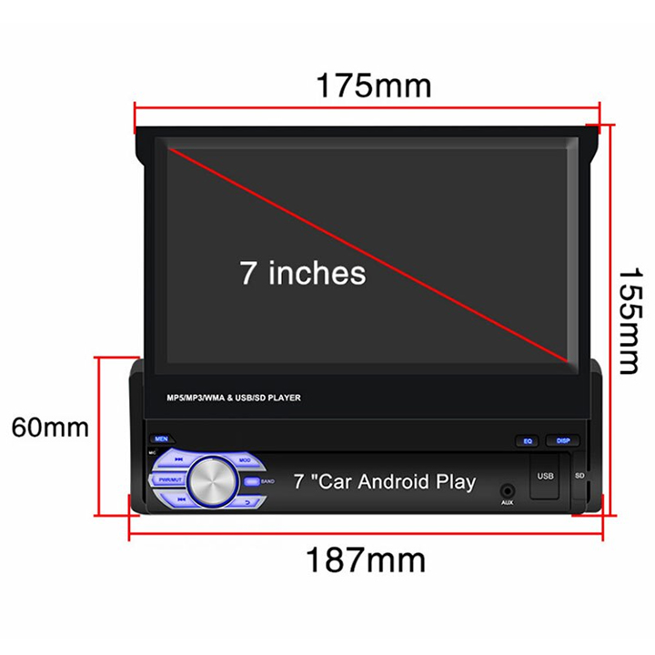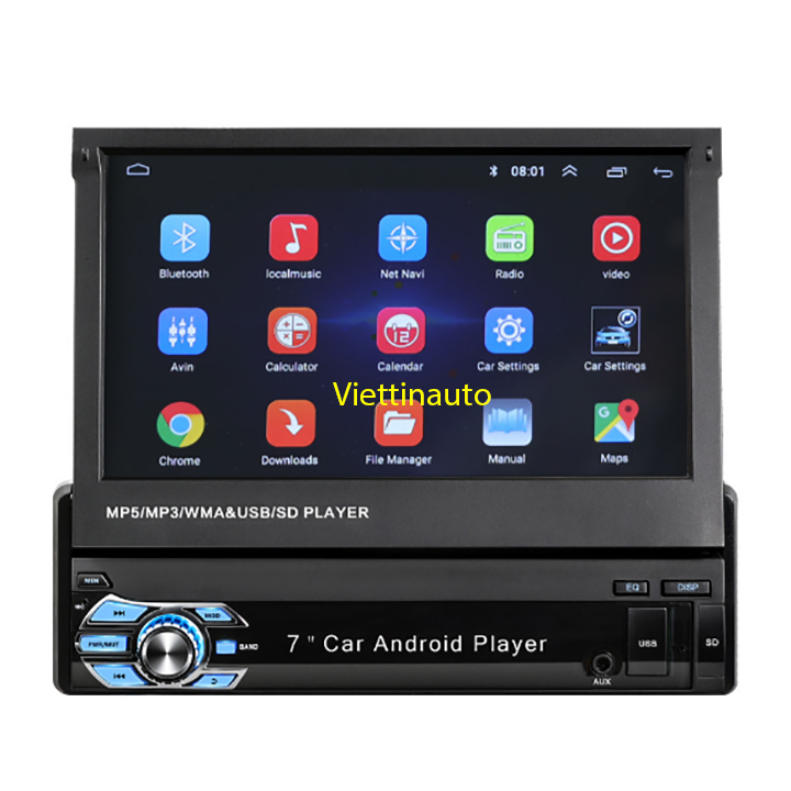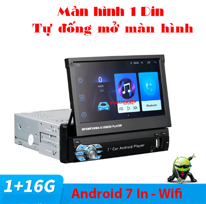 Thiết kế 1 DIN màn hình 7 Inc tự động trượt đóng mở thu gọn màn hình rât hiện đại