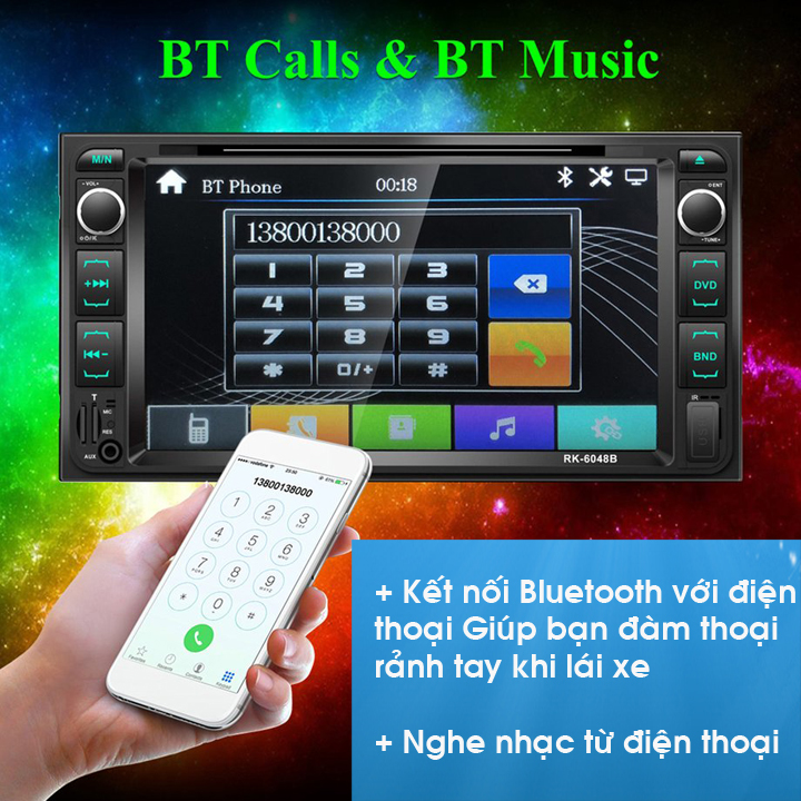 Tên sản phẩm: Màn hình Ô tô DVD 2 DIN lắp chung cho dòng xe Toyota RK-6048B