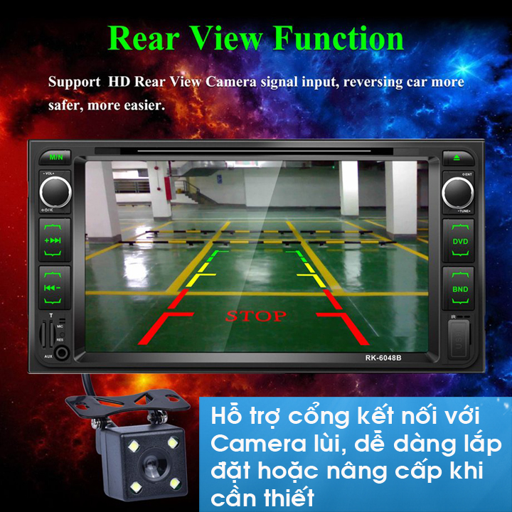 * Màn hình Ô tô DVD 2 DIN lắp chung cho dòng xe Toyota RK-6048B cho hình ảnh sống động rõ dàng, sắc nét...