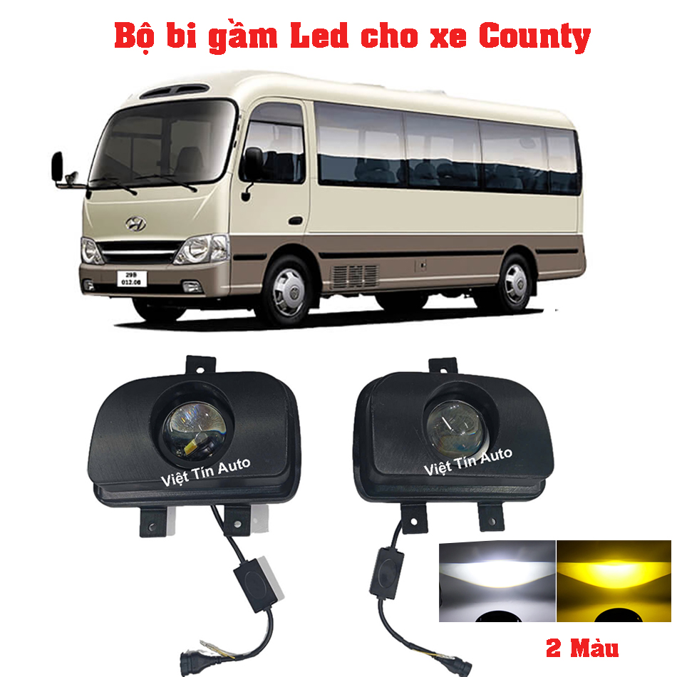 - Bộ đèn bi gầm, đèn sương mù 2 màu trắng vàn cho xe County 29 chỗ kèm dưỡng bắt Zin nguồn DC12-32V
