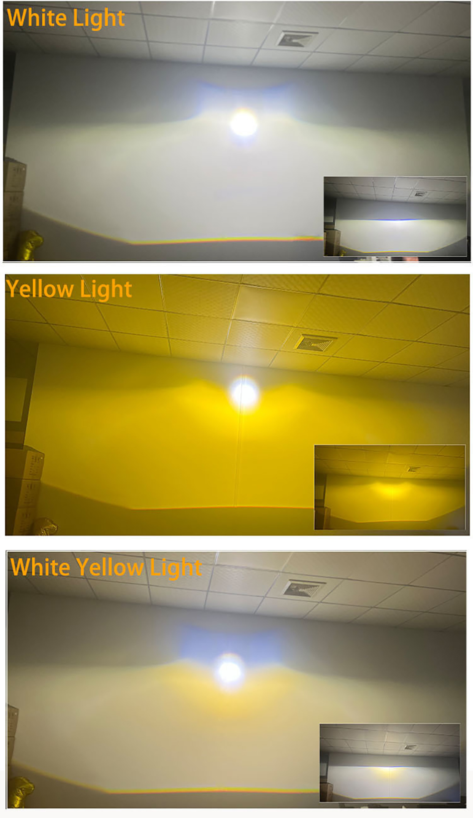 4. Tích hợp 3 màu trong 1 đèn, đổi màu đơn giản, tắt/bật đèn là tự đổi màu: Màu trắng (nhiệt màu 6000K) sử dụng ở điều kiện thời tiết bình thường đường khô ráo, màu vàng nắng (4300K) sử dụng khi gặp trời mưa, màu vàng đậm (3000K) sử dụng khi gặp sương mù.