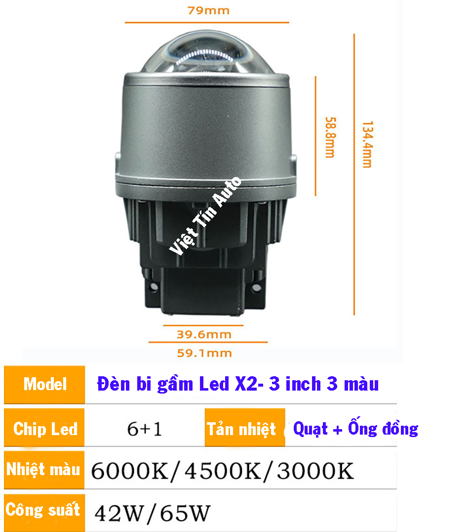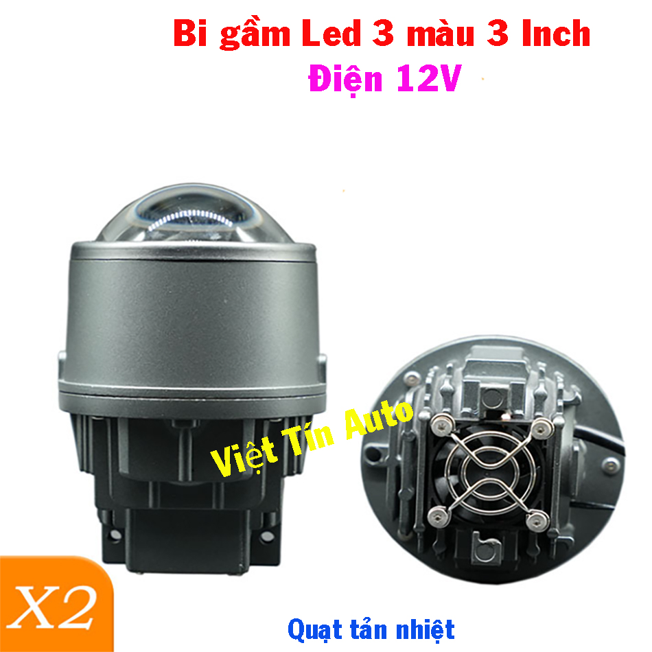 Tên sản phẩm: Bộ đèn bi gầm Led 3 mầu 3 Inch X2 có quạt tản nhiệt