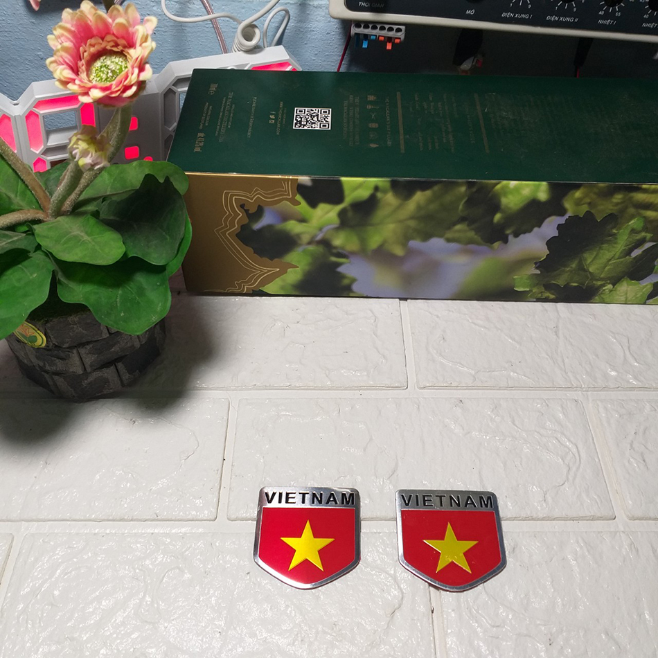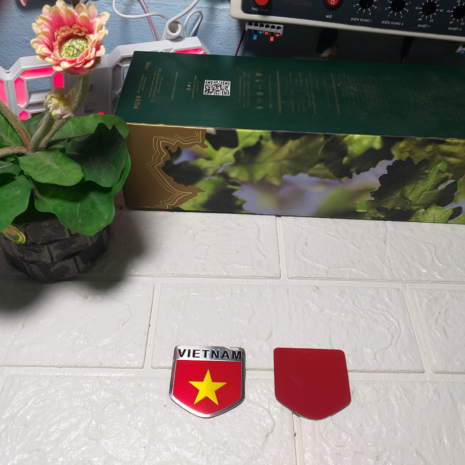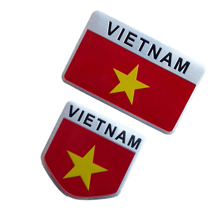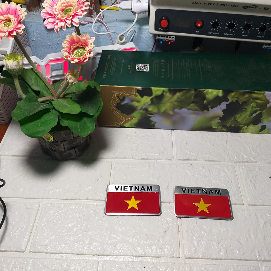 Miếng dán kim loại Cờ Việt Nam hình chữ nhật, sử dụng cho ô tô, xe máy, góc học tập, làm việc. trang trí phòng