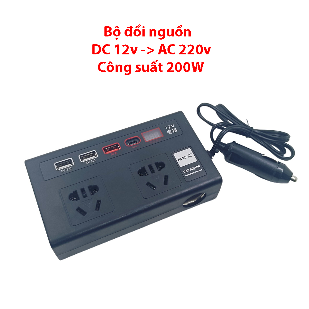 Bộ chuyển nguồn Dc12V/24V lên AC 220V- 200W sử dụng trên ô tô KĐ02 hay còn gọi là Bộ kích điện dùng để biến đổi điện áp 1 chiều từ acquy (điện áp DC) thành điện áp AC 220v dùng cho thiết bị điện dân dụng như laptop, thiết bị âm thanh ….