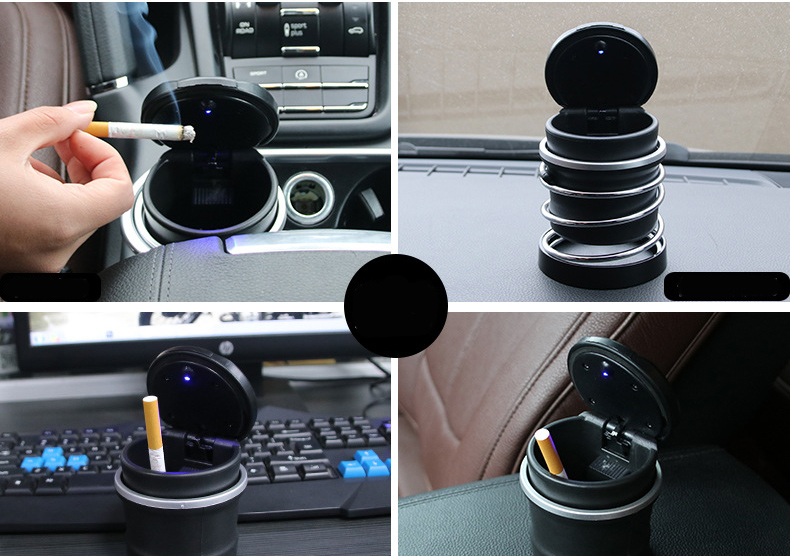 + Gạt tàn thuốc lá tích hợp đèn LED cho xe ô tô sẽ là sản phẩm vô cùng tiện lợi gon gàng và mang phong cách hiện đại. Hôp gạt tàn này giúp bạn có ý thức hơn trong việc hút thuốc trong xe, vừa giảm được những bụi bẩn gây khó chịu cho bạn.