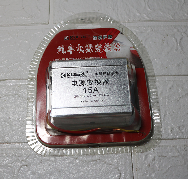 - Bộ đổi nguồn DC 24V sang DC 12V chính hãng KUERL cho Ô tô 15A: Là bộ adapter chuyển đổi điện áp 1 chiều DC24v-36V xuống dòng điện 1 chiều DC12v -15A chuyên dụng dành riêng cho Ô tô.