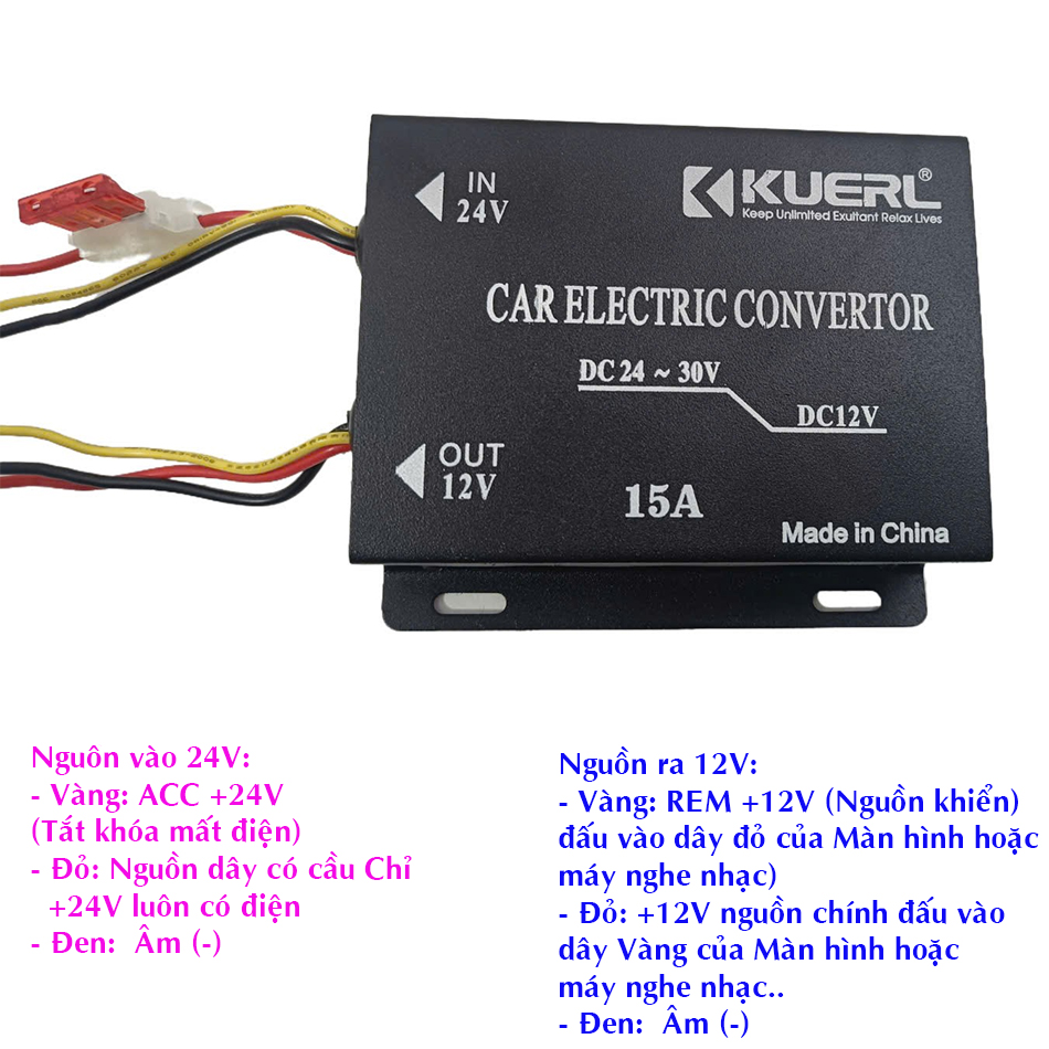 - Thiết bị đổi nguồn DC 24V về DC 12V -15A cho Ô tô : Là bộ adapter chuyển đổi điện áp 1 chiều 24V xuống dòng điện 1 chiều DC12V