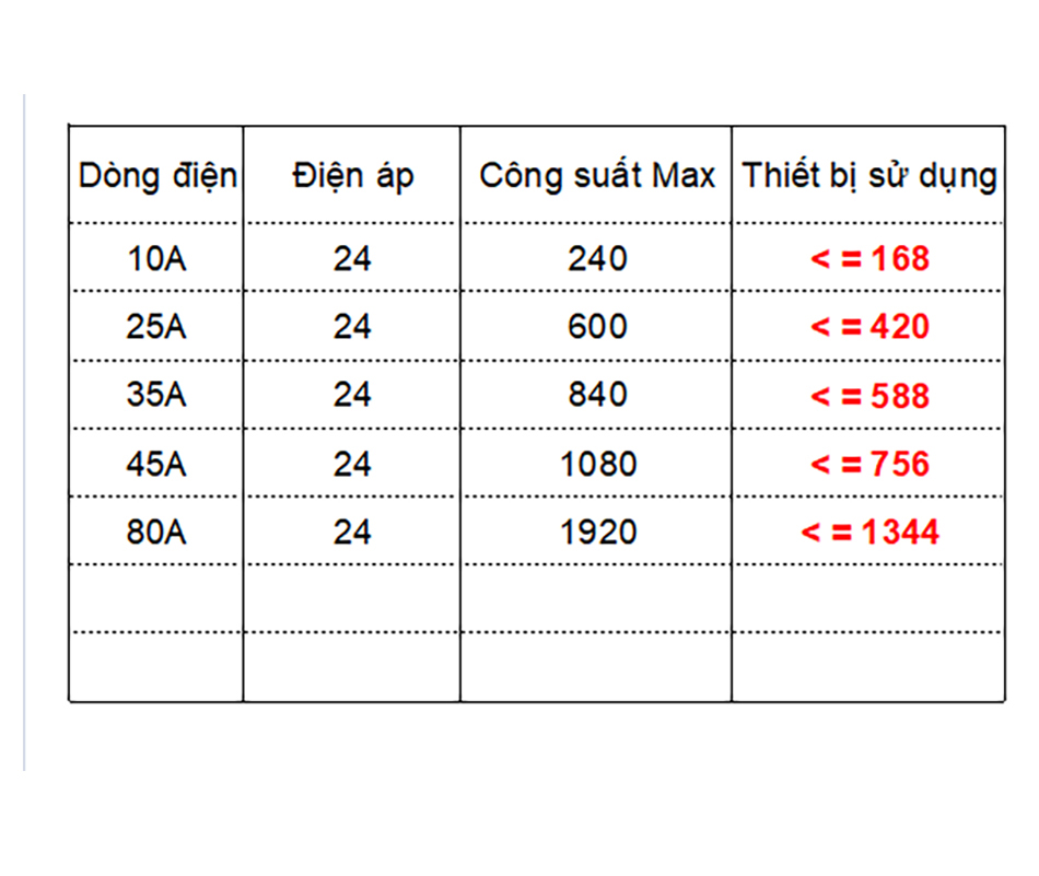 Dải điện áp đầu ra giao đông: 23.5 -25.5V
