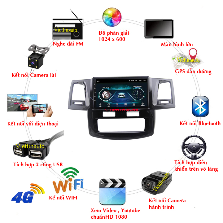 Tên sản phẩm: Màn hình Android 9 In theo xe Toyota Fortuner Toyota Hilux 2008-2016
