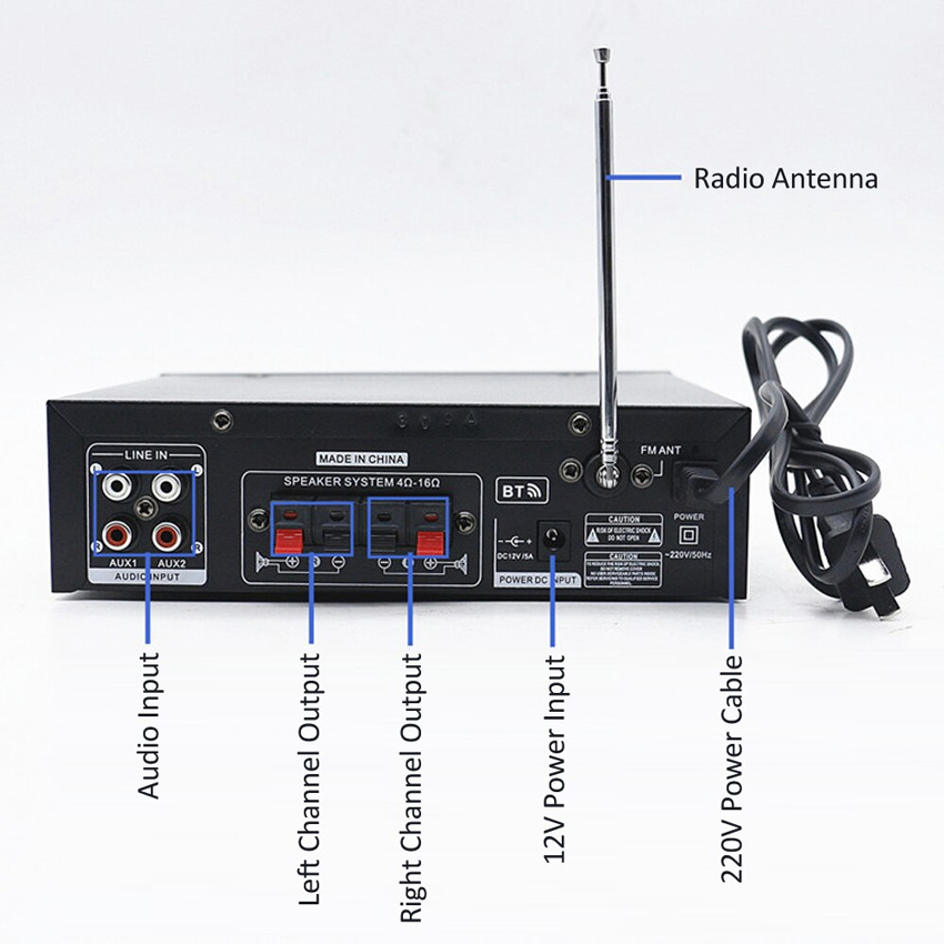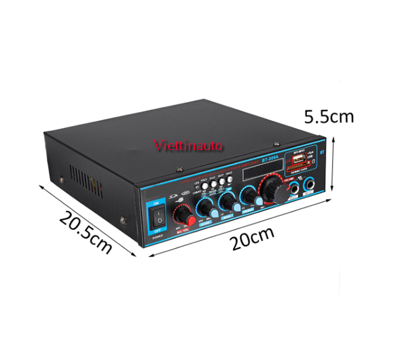 Ampli Karaoke Mini 12V đă năng 2 cổng Mic BT-309A