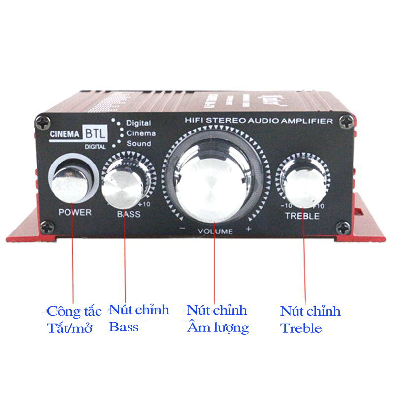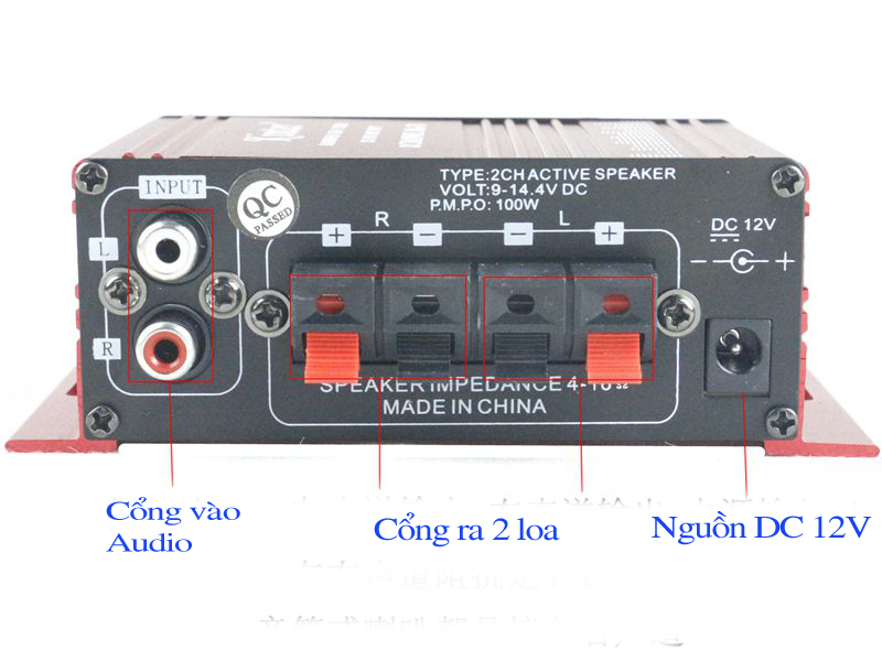 Bộ sản phẩm bao gồm: Ampli mini + Nguồn 12V2A + Dây tín hiệu