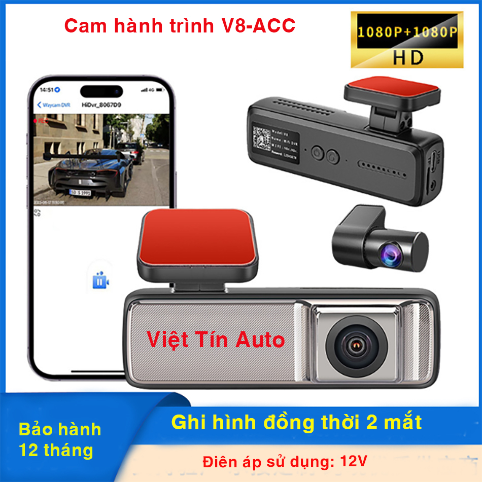 - Tên sản phẩm : Bộ camera giám sát hành trình ghi hình 2 mắt, kết nối Wifi xem hình trên điện thoại V8-ACC