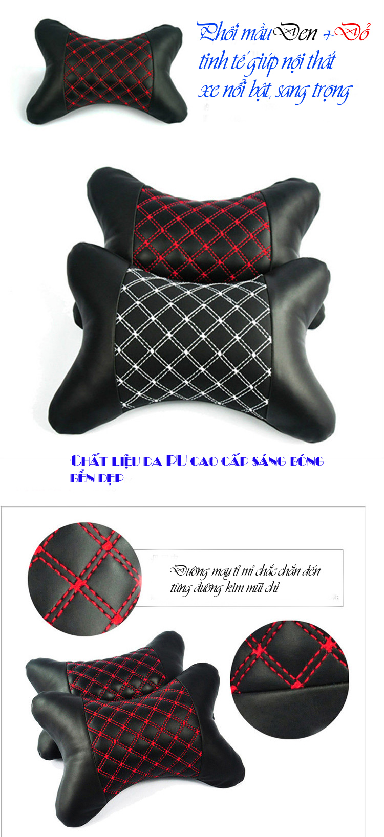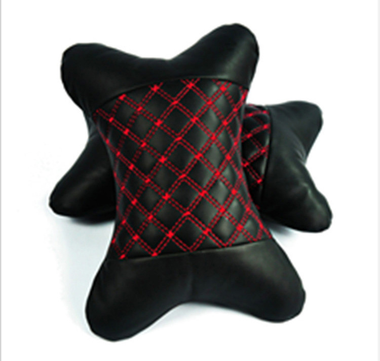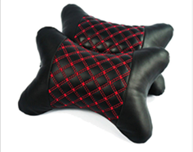 - Tên sản phẩm: Bộ 02 gối tựa đầu xe hơi Đen phối đỏ da PU cao cấp