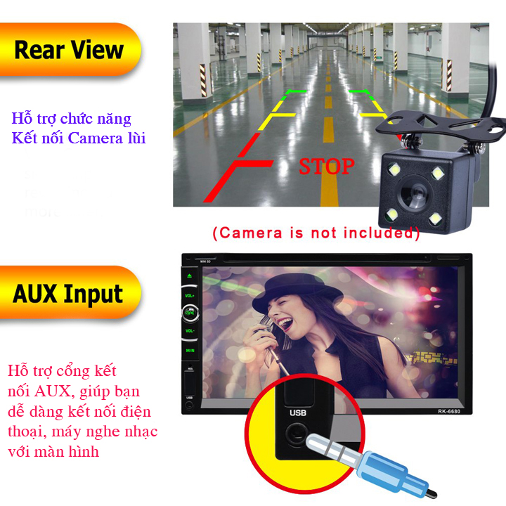 Một số hình ảnh Màn hình DVD Ô tô 2 DIN cảm ứng RK-6680 Và Camera lùi 4 Led