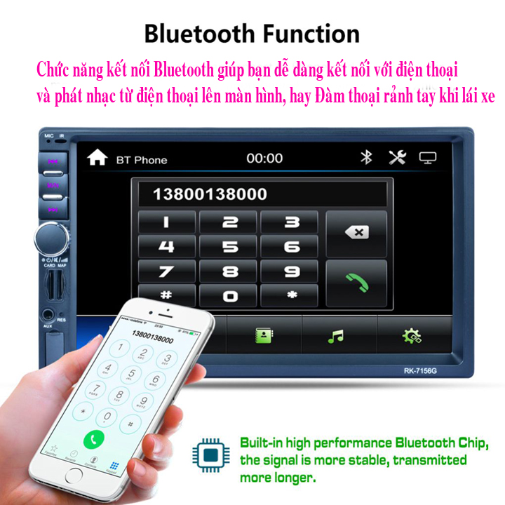 * Hỗ trợ kết nối bluetooth giúp bạn dễ dàng kết nối điện thoại, máy tính bảng với màn hình để nghe nhạc từ điện thoại hay máy tính bảng, hay đàm thoại rảnh tay trong lúc lái xe