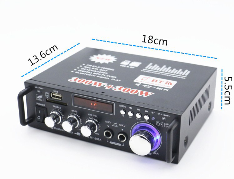 Bộ Ampli Mini Blutooth sử dụng nguồn AC 220v hoặc DC 12V tích hợp 2 cổng MIC
