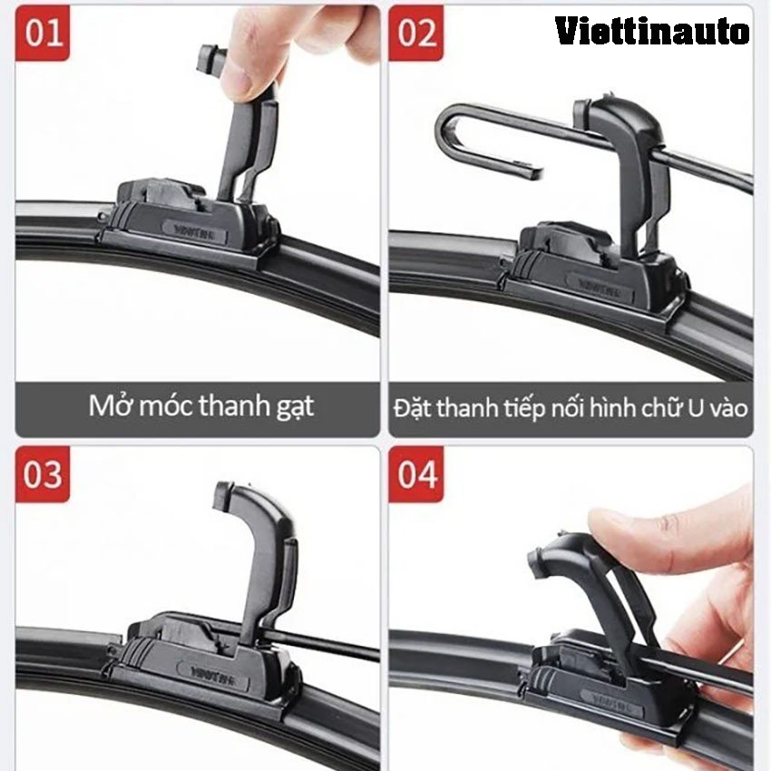 Cách thay lắp gạt mưa không xương rất đơn giản, hướng dẫn như trên hình minh họa phía trên, áp dùng được hầu hết các dòng xe Nhật Hàn hiện nay trên thị trường