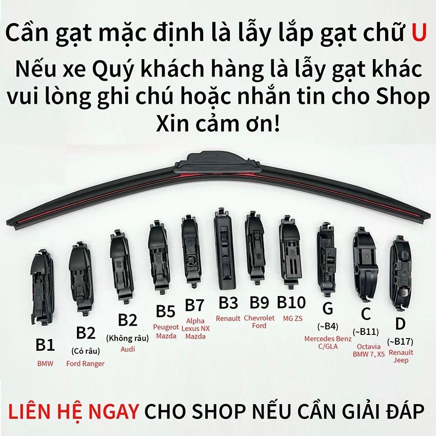 Do nhiều dòng xe, hãng xe sử dụng cần gạt mưa có kích thước khác nhau. Kích thước cần gạt bên lái, bên phụ có thể khác nhau, khách hàng lưu ý kiểm tra và đo thực tế kích thước gạt mưa đang sử dụng trên xe để chọn kích thước phù hợp với xe của mình.
