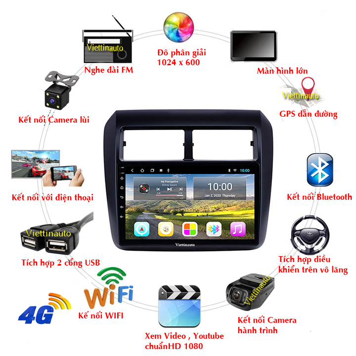 Tên sản phẩm: Màn hình Android 9 Inch Toyota WIGO có GPS dẫn đường, điều khiển ra lệnh bằng giọng nói