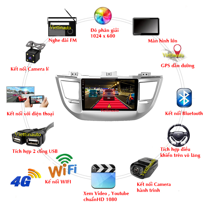 Tên sản phẩm: Màn Hình 10 Inch Huyndai Tucson 2014-2018 có GPS dẫn đường, điều khiển ra lệnh bằng giọng nói
