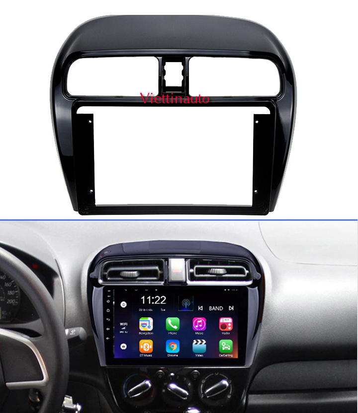 Một số hình ảnh về Mặt dưỡng lắp màn hình 9 In xe Mitshubishi Mirage 2012-2018 Kèm rắc nguồn zin