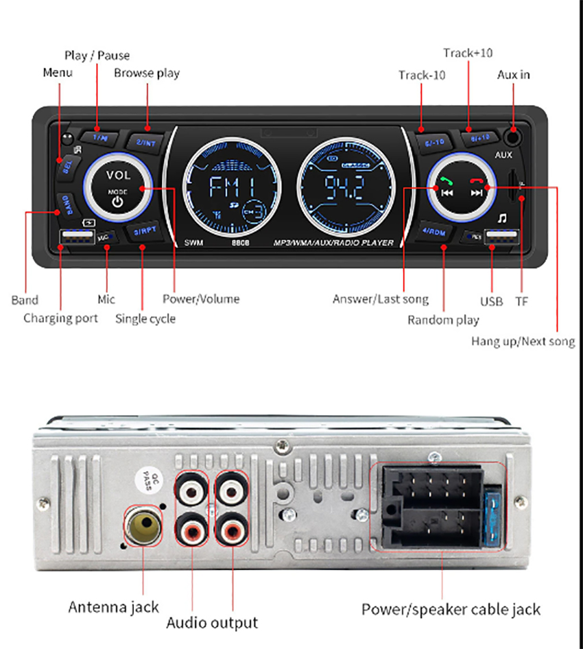 - Tên sản phẩm: Máy nghe nhạc Bluetooth, đài FM, máy nghe nhạc MP3 xe hơi 8808