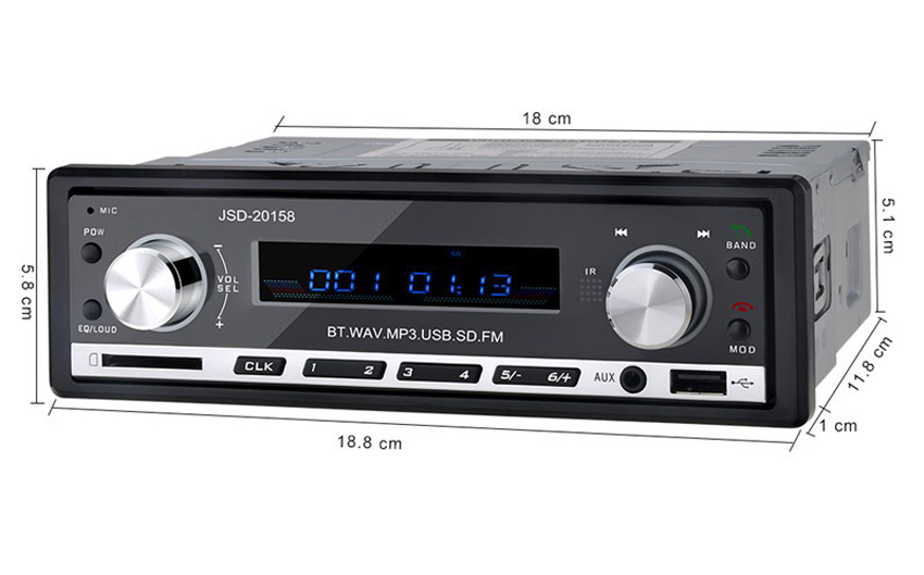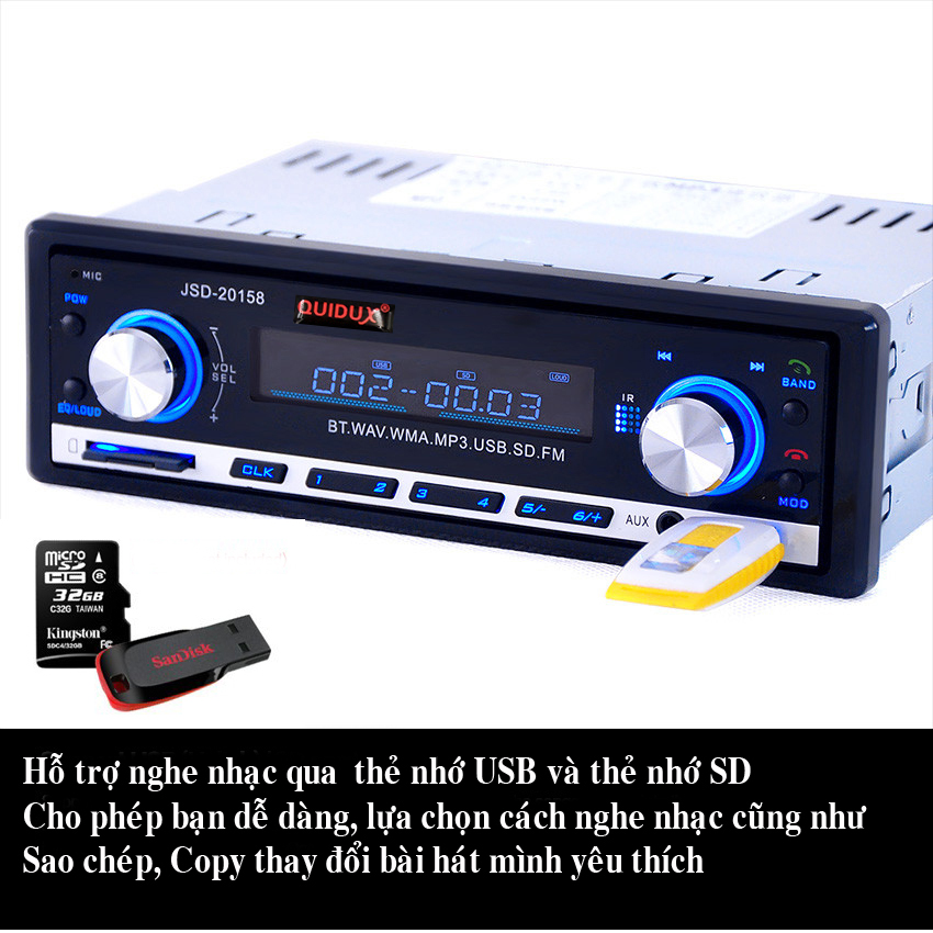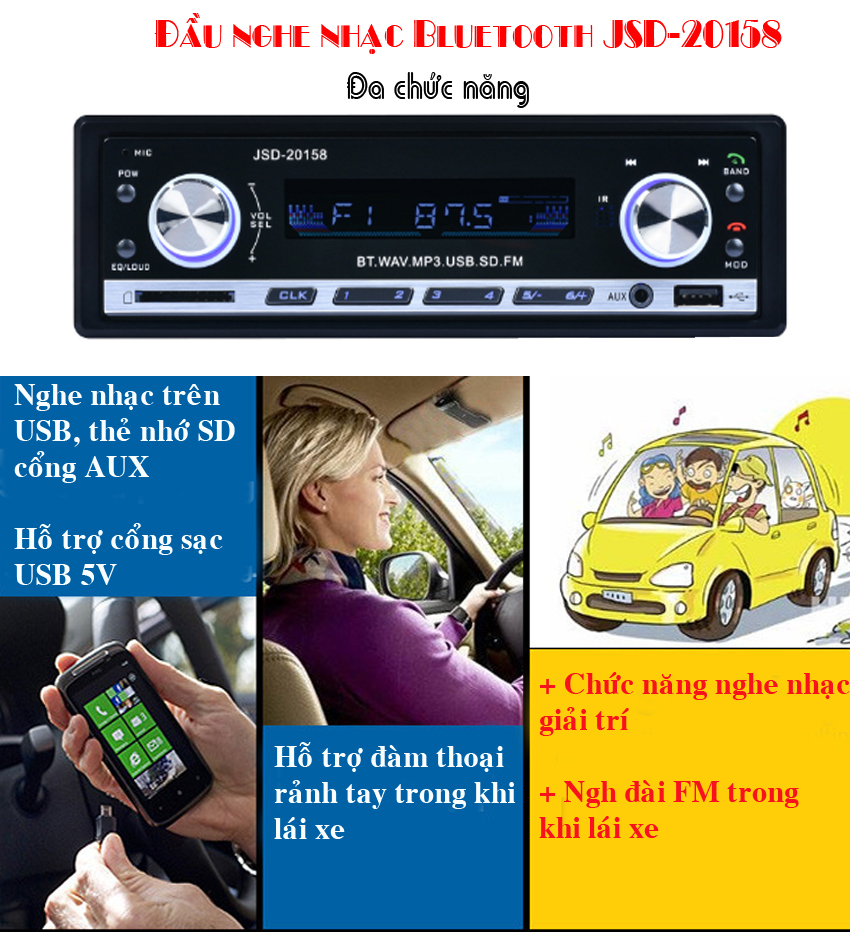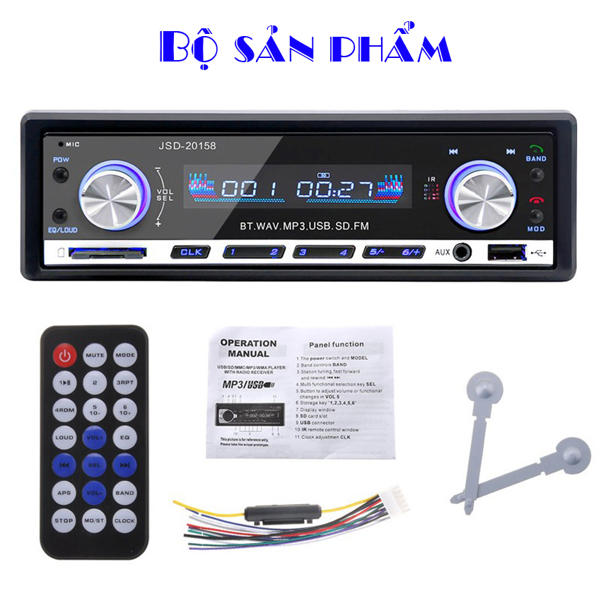 - Tên sản phẩm: Đầu nghe nhạc MP3 hỗ trợ Bluetooth kiêm Đài FM cho Ô tô JSD-20158