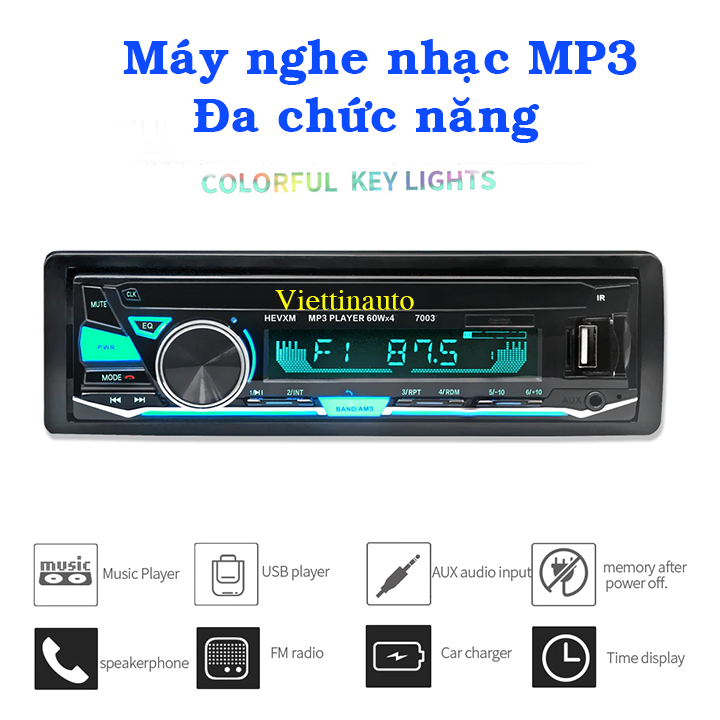 Đầu nghe nhạc Mp3, đài FM Ô tô cao cấp nguồn điện 12V 7003 là dòng máy cao cấp, với nhiều tính năng và ưu điểm