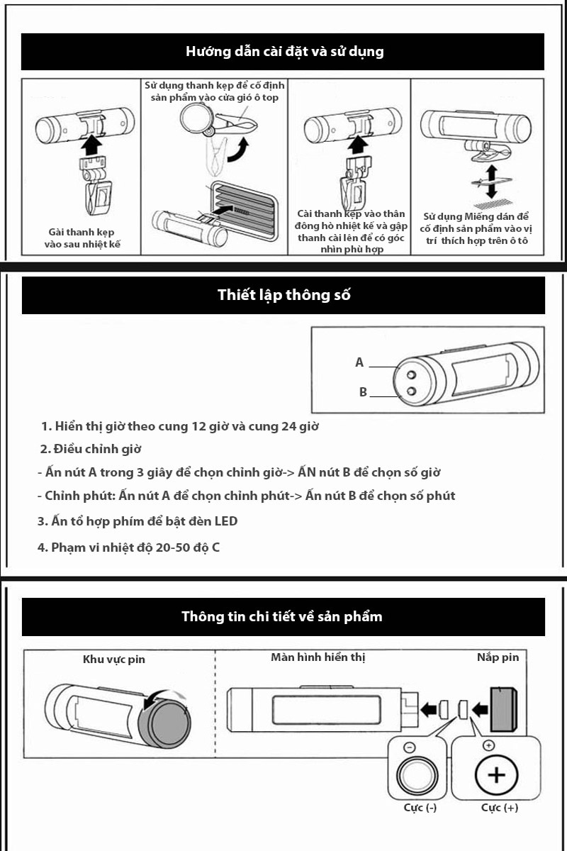 Đồng hồ kiêm nhiệt kế kẹp cửa gió ô tô thông báo thời gian và nhiệt độ trên ô tô bằng số điện tử màn hình, dễ dàng quan sát và nắm bắt thông tin