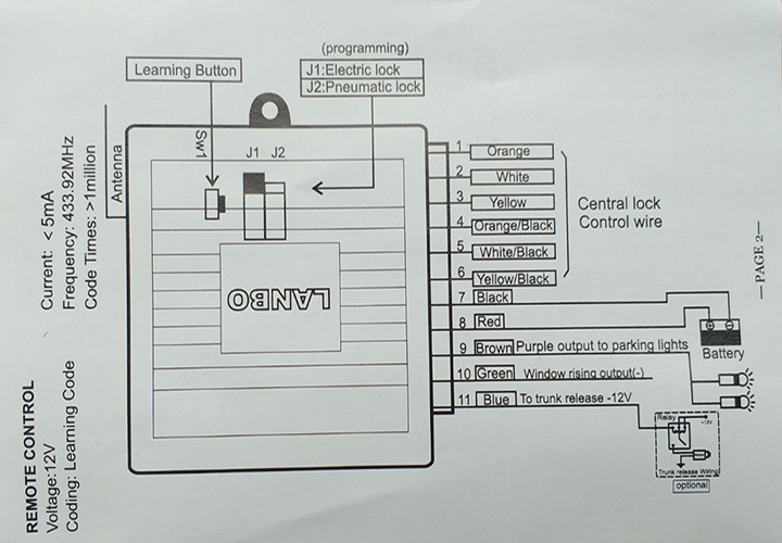 Hệ thống khóa điều khiển từ xa với đèn báo nhấp nháy