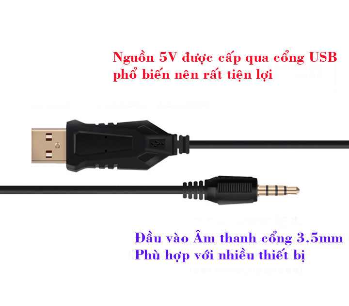 Jack cắm chuẩn 3.5mm, giúp bạn có thể nghe nhạc từ nhiều nguồn khác nhau như điện thoại, IPod hay đầu DVD, Đầu HD mà không cần cáp chuyển đổi.