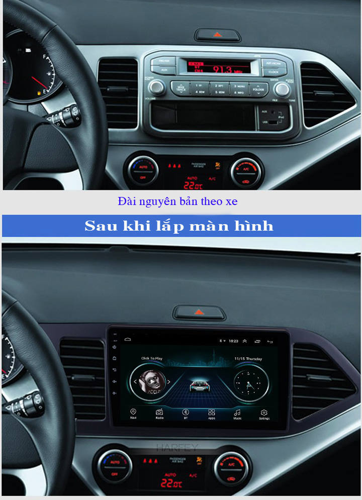 Một số hình ảnh Màn hình Android 8.1 theo xe Kia Morning, Picanto