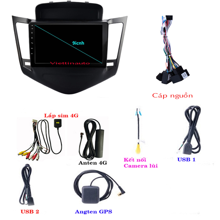 Tên sản phẩm: Màn hình Android Sim 4G 9 Inc Tiếng Việt theo xe Chervolet Cruze RAM 1G ROM 16G