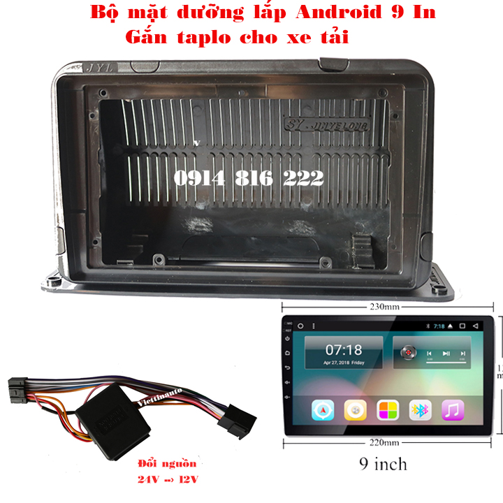 Tên sản phẩm: Bộ Màn hình OLed 9 In gắn taplo cho xe tải kèm đổi nguồn 24V về 12V