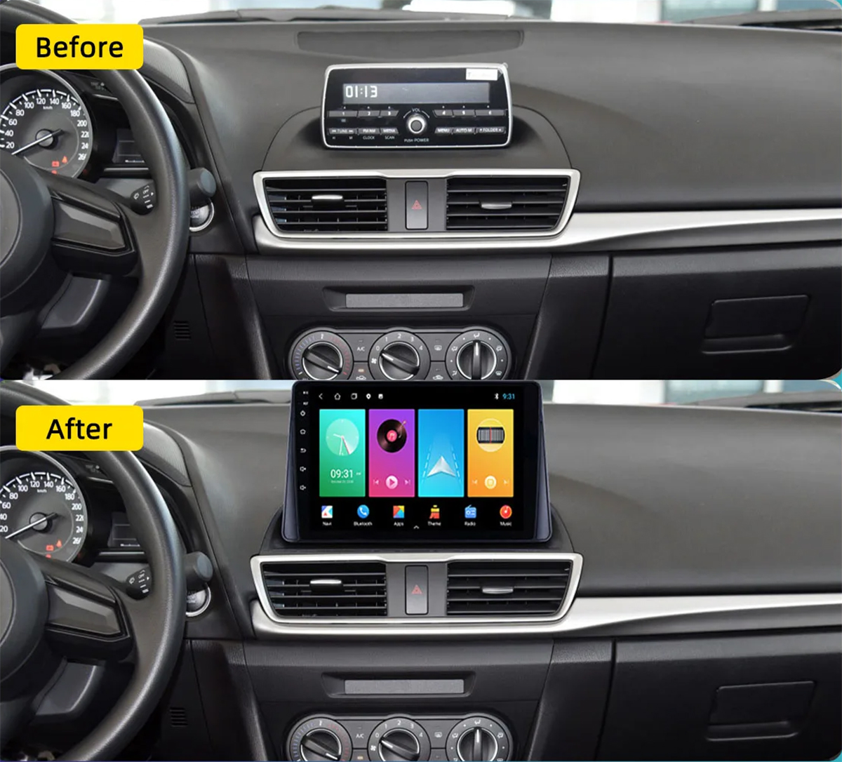 Thiết kế chuẩn cho xe Mazda 3 đời 2014 -2021 giúp Anh chị lắp đặt như zin trên xe, mà không phải cắt nối độ chế gì