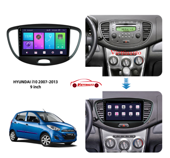Một số hình ảnh về Mặt dưỡng xe Huyndai I10 2008-2013 Lắp màn 9 In kèm rắc nguồn