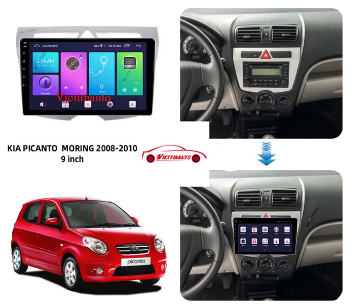 Bạn đang sở hữu 1 chiếc xe Kia Morning 2008-2010 hệ thống âm thanh, nguyên bản theo xe là chiếc đài đĩa CD, bạn muốn nâng cấp lắp đặt màn hình để nghe nhạc, xem phim, video giải trí cũng như nâng cấp lắp đặt camera lùi giúp bạn an toàn hơn khi lái xe. Tuy nhiên với một chiếc xe chưa được trang bị mặt dưỡng để lắp đặt màn hình thì bạn khó có thể lắp thêm được màn hình.Hiểu được điều đó chúng tôi giớ thiệu đến các bạn Mặt dưỡng xe Kia Morning 2008-2010 Lắp màn 9 In kèm rắc chuẩn