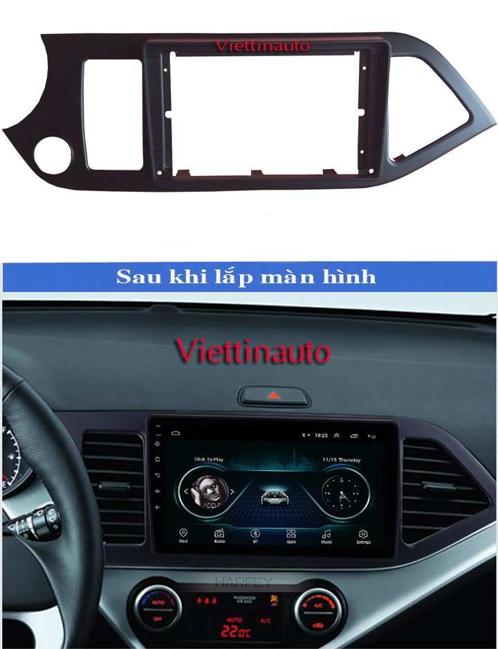 Một số hình ảnh về Mặt dưỡng xe Kia morning lắp màn hình 9 In 2014-2019