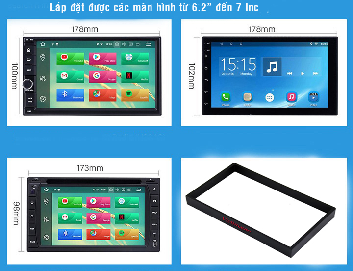 + Lắp đặt được hầu hết các loại màn hình 7 Inc phổ biến như: Màn hình MP5, màn hình DVD, Màn hình Android 7 In..