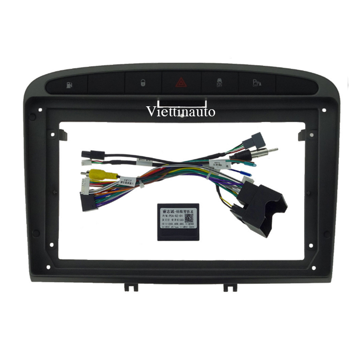 Tên sản phẩm: Mặt dưỡng xe Peugeot 408, Peugeot 308 308SW Lắp màn 9 In kèm rắc chuẩn và Canbus