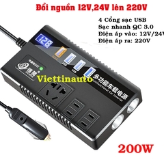 Bộ đổi nguồn DC12V/24V lên AC 220V 200W, Kích điện 12V 24V lên 220V- Mẫu KĐ01