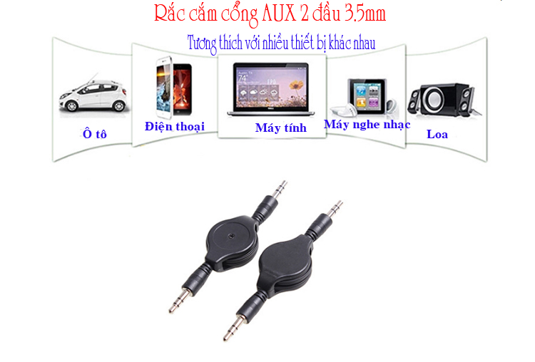 + Dùng để kết nối Điệnt hoại, máy tính bảng, máy nghe nhạc với hệ thống âm thanh trên Ô tô thông qua cổng AUX 3.5mm