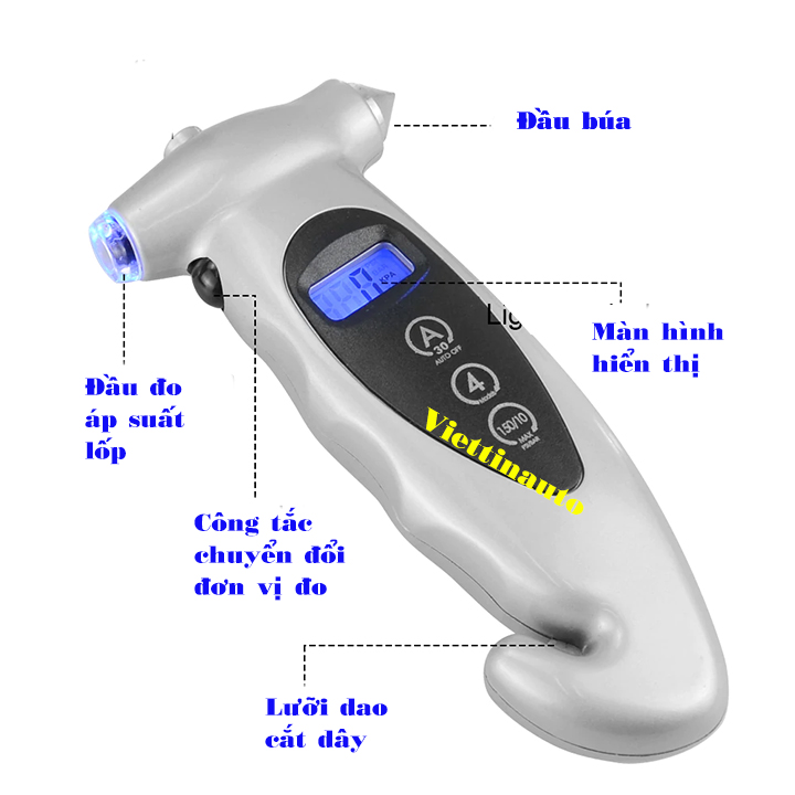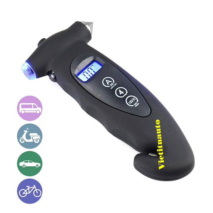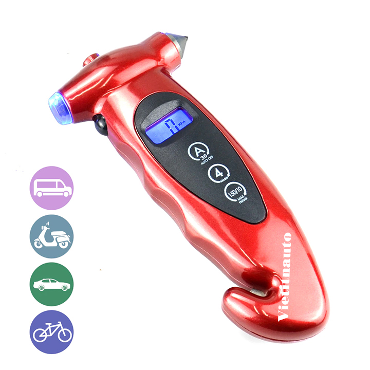 Thiết bị kiểm tra áp suất lôp kiêm búa thoát hiểm là thiết bị đa năng với nhiều cung dụng trong cùng 1 sản phẩm: